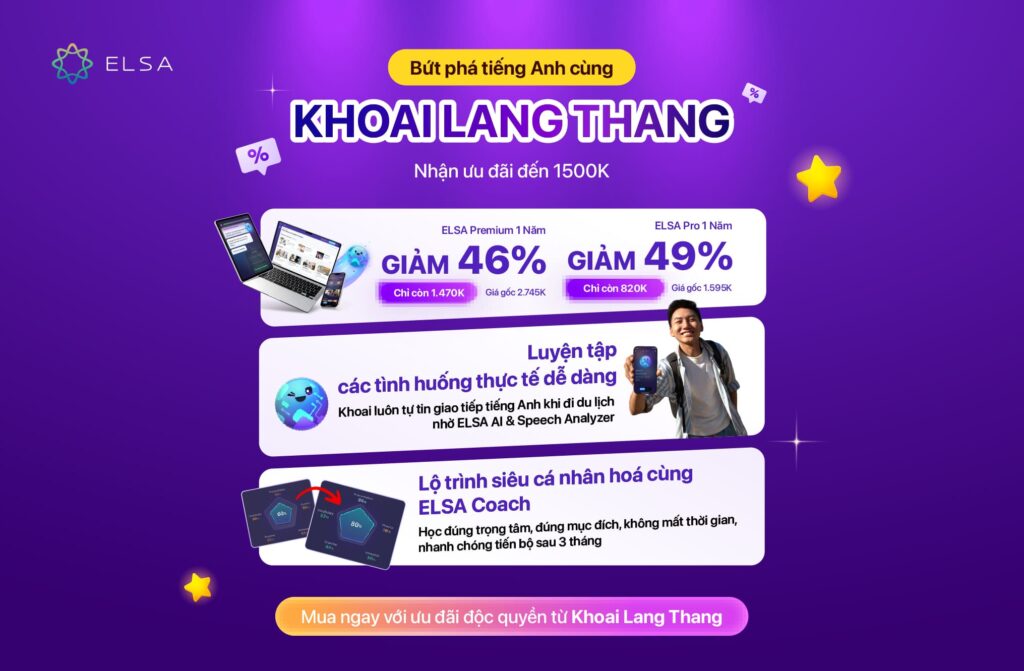 Bên cạnh các kênh học thụ động, việc có một công cụ luyện tập chuyên sâu, có thể tương tác và sửa lỗi trực tiếp sẽ giúp bạn tiến bộ vượt bậc. ELSA Speak chính là giải pháp toàn diện, hoạt động như một gia sư Trí Tuệ Nhân Tạo đồng hành cùng bạn học tiếng Anh online 1-1 mọi lúc mọi nơi.