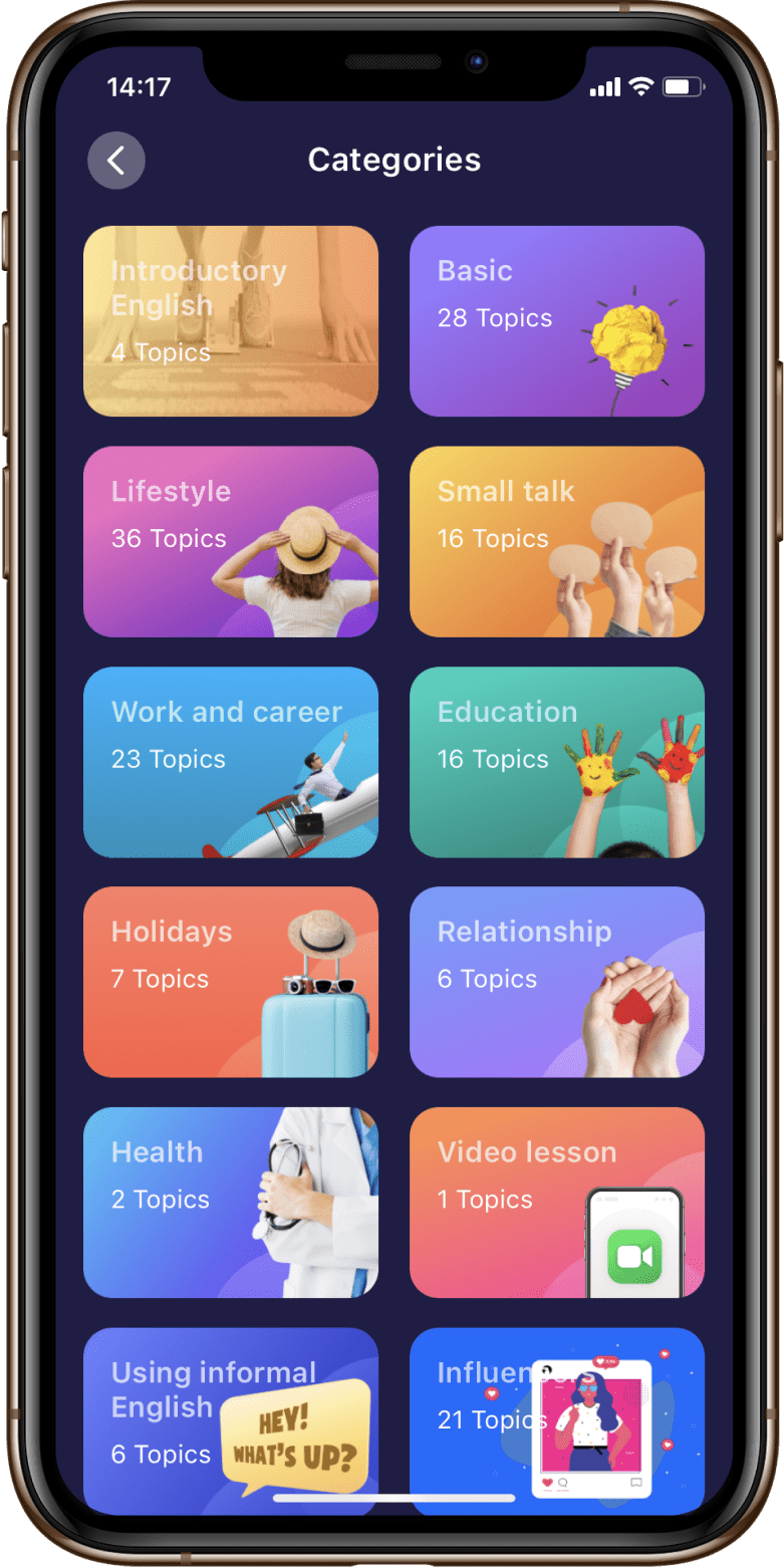 Đầy đủ tất cả các kỹ năng nói, bao gồm phát âm, nhấn âm và ngữ điệu. Hơn 150 chủ đề, 5,000 bài học, 25,500 bài luyện tập, từ tiếng Anh thương mại, chuyên ngành đến hội thoại thông thường.