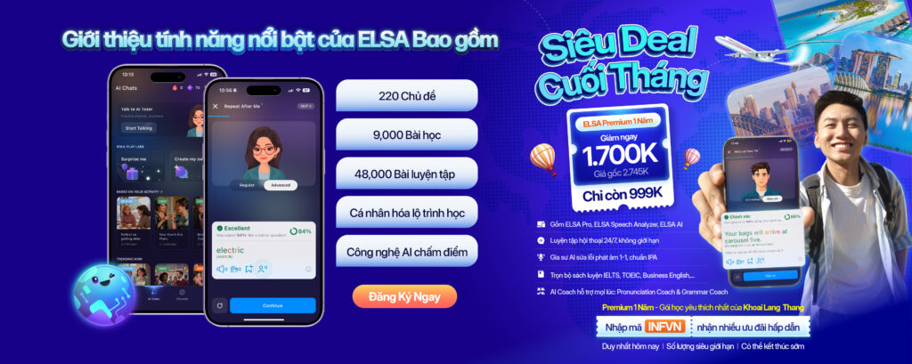 >> Đừng chỉ dừng lại ở việc làm bài tập ngữ pháp tiếng Anh trên giấy, hãy biến kiến thức thành phản xạ tiếng Anh giao tiếp tự nhiên với sự hỗ trợ từ Trí Tuệ Nhân Tạo. Tải ngay ứng dụng ELSA Speak để được chỉnh sửa phát âm chuẩn xác đến từng âm tiết.