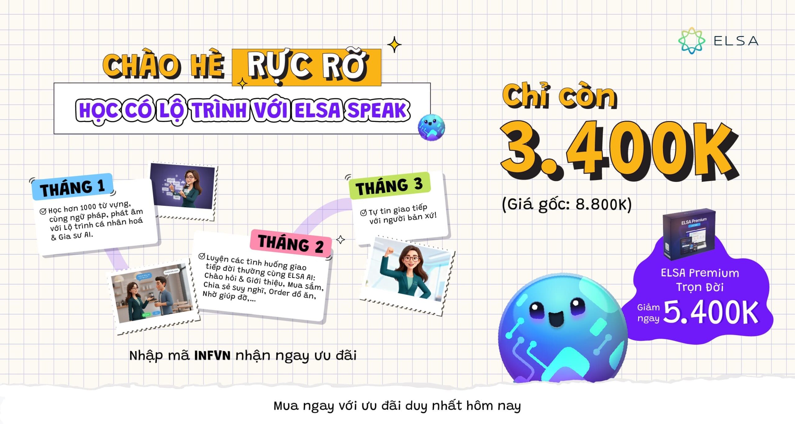 Chào tháng mới: ELSA Speak ưu đãi cực sốc, giảm ĐẾN 5.4 triệu