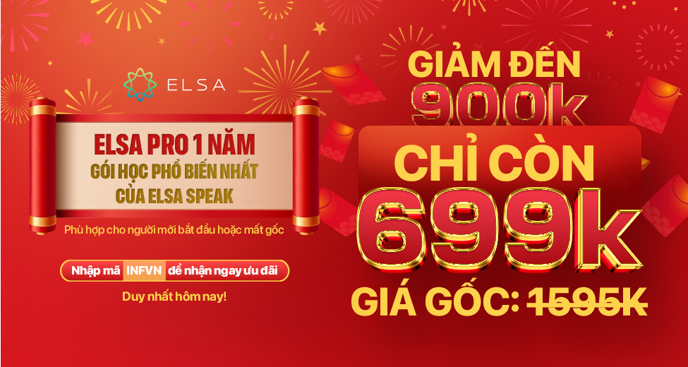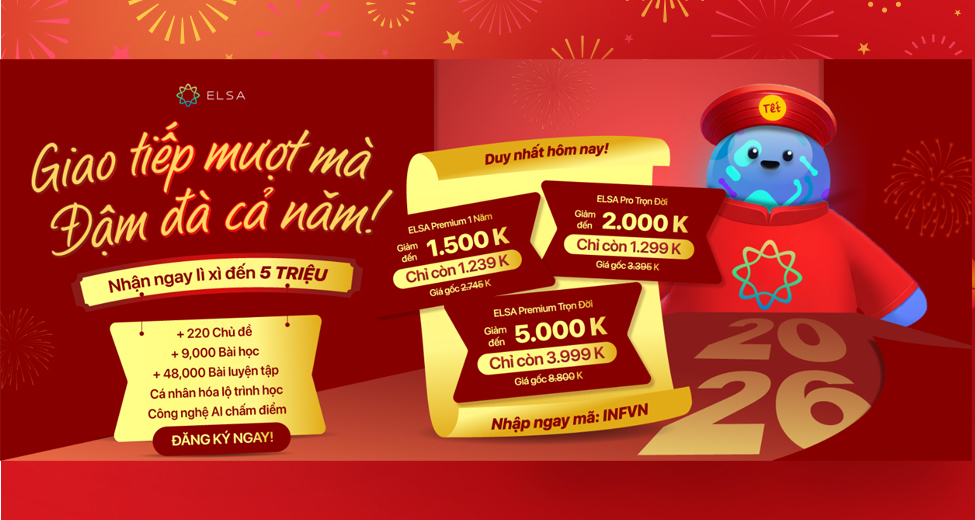 Đặc quyền Năm Mới dành cho học viên ELSA Pro Trọn Đời: Nâng cấp ELSA Premium trọn đời chỉ 2.999k