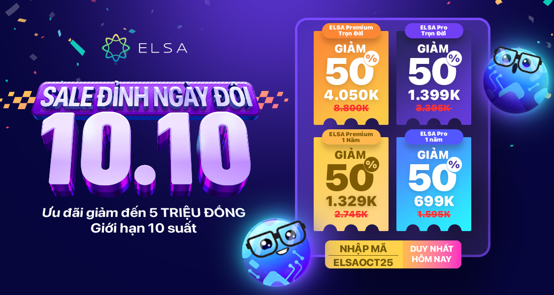 Hiện nay, đã có hơn 10 triệu người dùng tại Việt Nam tin tưởng lựa chọn ELSA Speak. Để cùng nhau nâng cao trình độ ngoại ngữ, hãy tải App ELSA Speak ngay hôm nay!