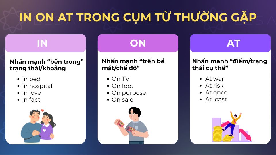 In On At trong cụm từ thường gặp
