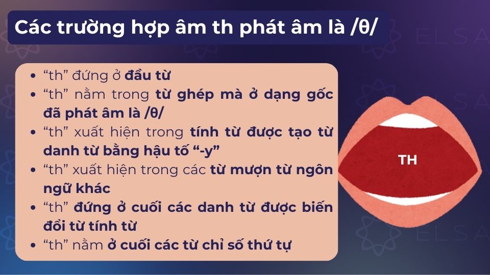 >> Luyện ngay cách phát âm /θ/ và âm /ð/ chỉ với 5k/ngày. Nhấn vào bên dưới để học cùng ELSA Speak, nơi bạn được hướng dẫn chi tiết bằng video, luyện nói thực tế và sửa phát âm chuẩn bản xứ bằng AI, giúp bạn tự tin nói tiếng Anh mỗi ngày.