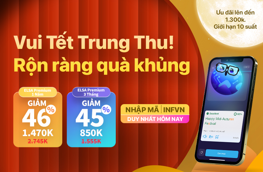 Hot: ELSA Speak vừa mở bán trở lại gói ELSA Pro, ELSA Premium với phiên bản 2025 cực xịn sò. Mừng quay trở lại với diện mạo mới – Elsa Premium, Elsa Pro giảm GIẢM GIÁ HẤP DẪN trong duy nhất hôm nay.