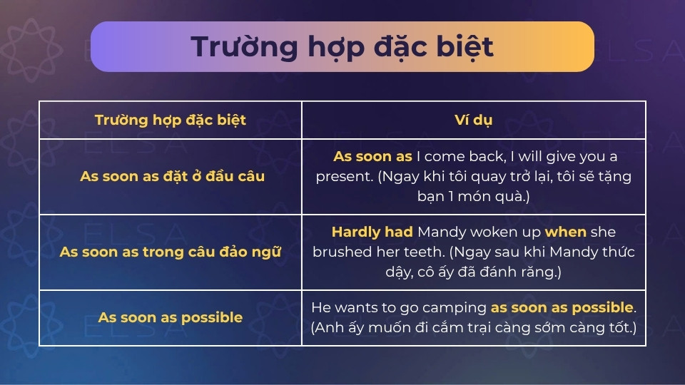 Các trường hợp đặc biệt của cấu trúc as soon as