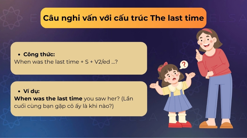 Cấu trúc nghi vấn của the last time thường được dùng để hỏi về thời điểm lần cuối cùng ai đó làm việc gì