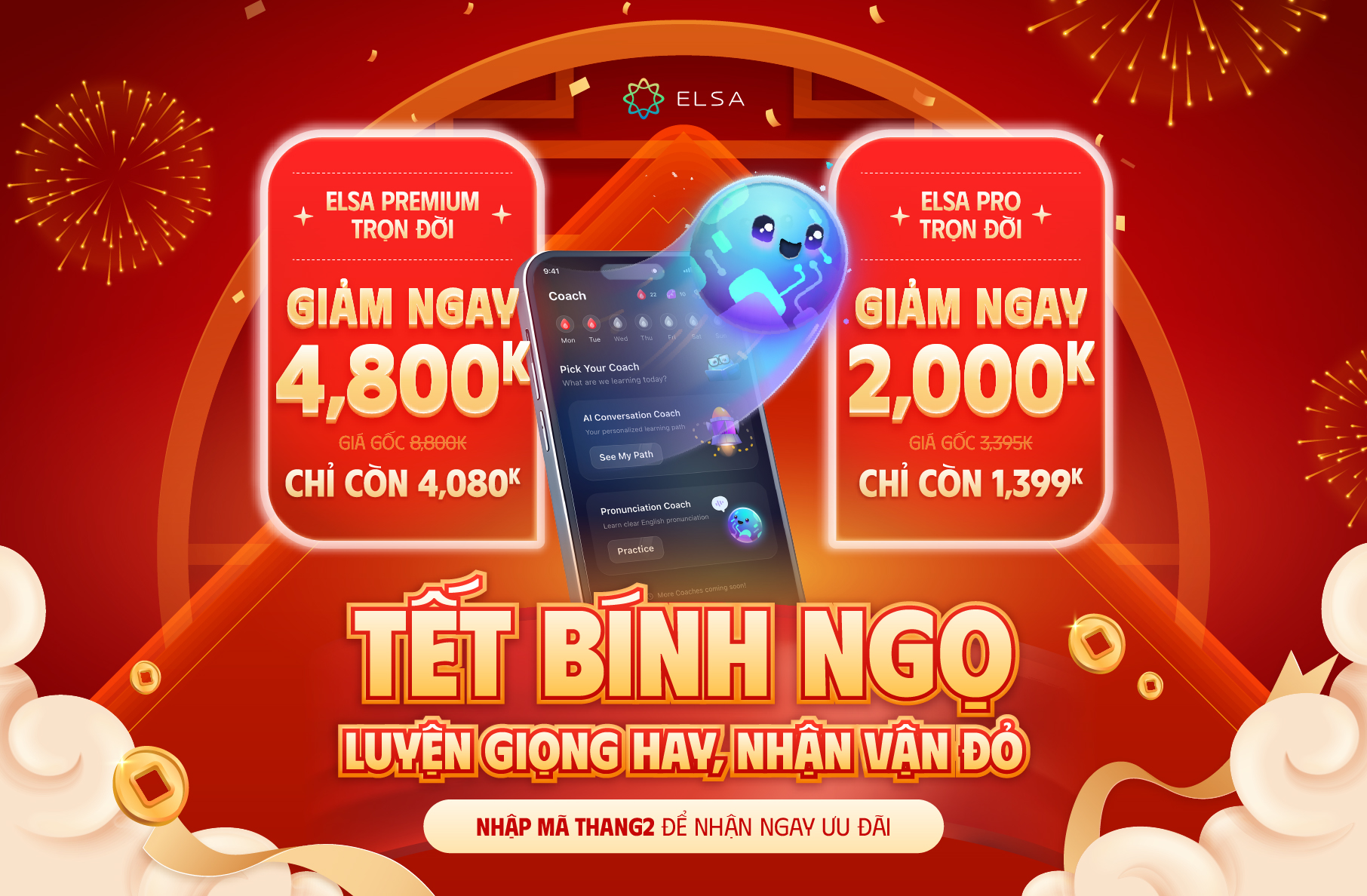 Nhập ngay mã THANG2 để nhận ưu đãi độc quyền dành riêng cho học viên của ELSA