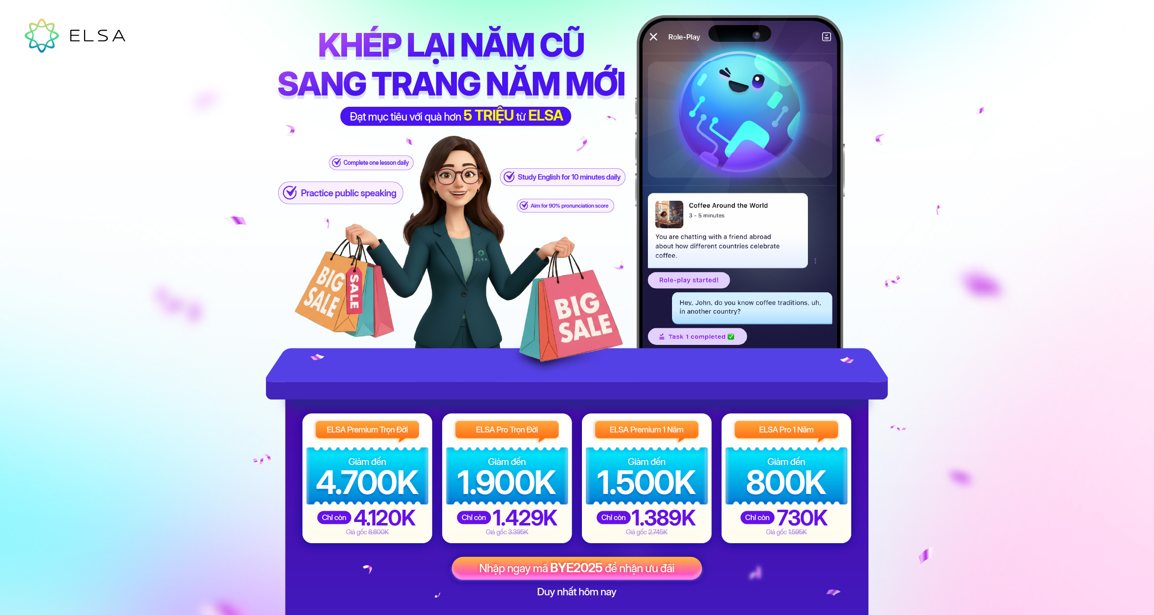 >> Bạn đang tìm hiểu khoá học giao tiếp tiếng Anh hiệu quả? Đừng lo, ELSA Premium mang đến lộ trình học cá nhân hoá, ứng dụng AI khi học tập. Vô vàn ưu đãi chỉ có tại ELSA Speak! Tham khảo ngay!