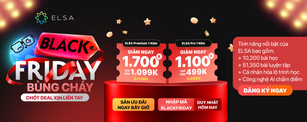 Nhập ngay mã BLACKFRIDAY để nhận ưu đãi độc quyền dành riêng cho học viên của ELSA