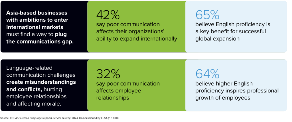 In Asia, where teams often operate in multilingual environments, this gap is particularly visible. IDC research highlights several performance-related challenges linked to language capability across Asia.