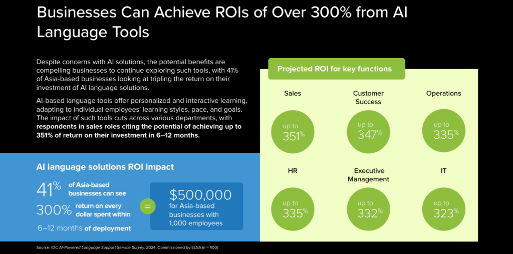 IDC’s Asia-Pacific research reinforces these trends. Organizations using modern language communication solutions report higher employee confidence, alongside improvements in customer-facing metrics such as first response rates, resolution time, and customer satisfaction.