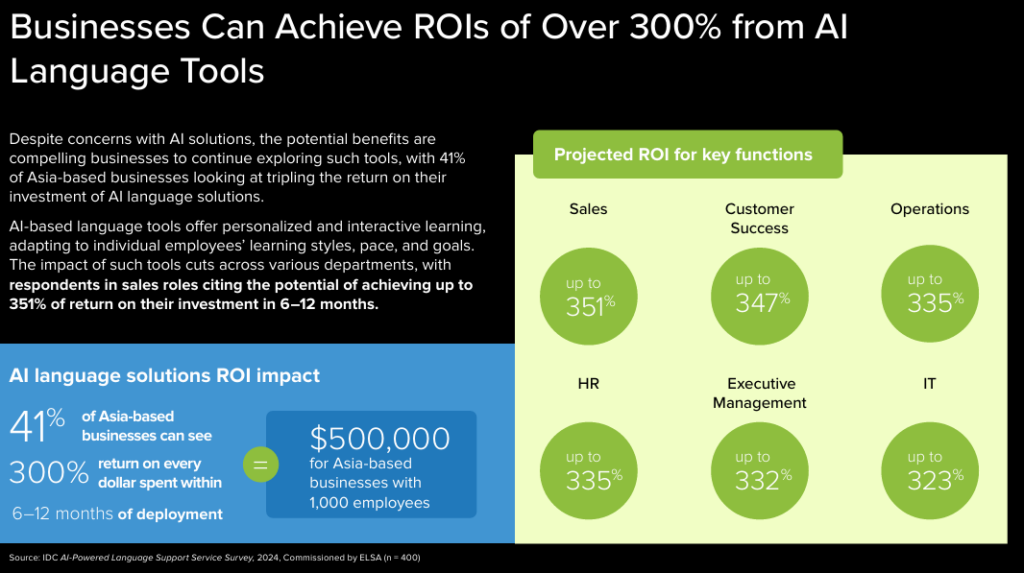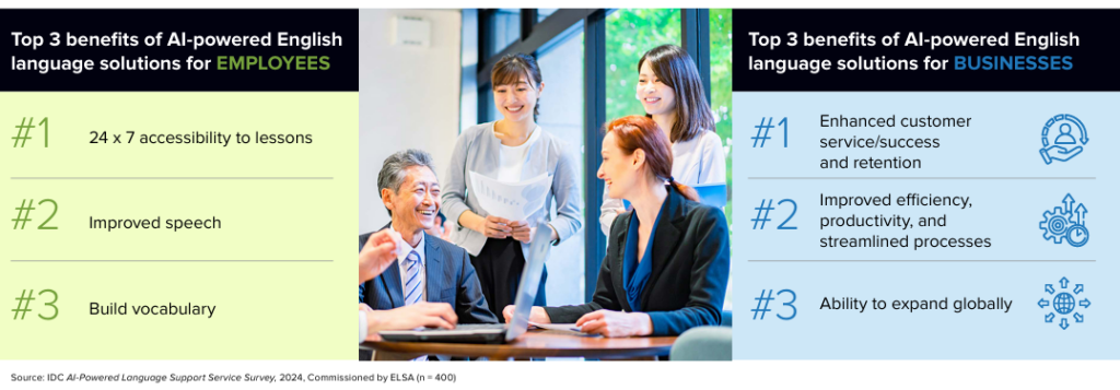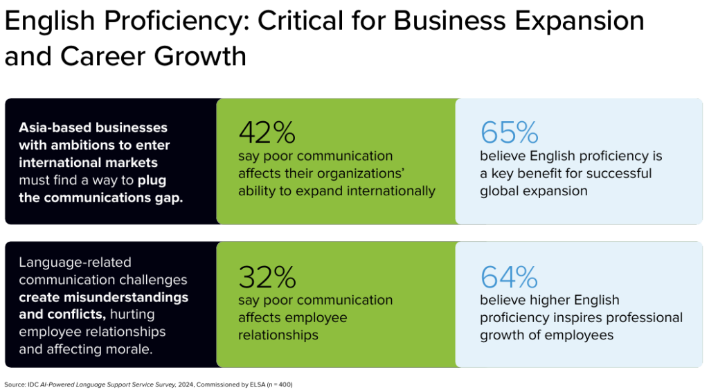 As businesses grow, the complexity of managing learning programs increases. AI personalizes corporate learning by adapting content to meet the individual needs of each employee, based on their job function, location, and language proficiency. Traditional training methods often fall short in delivering this level of personalization, leading to inconsistent results. IDC’s survey of 400 executives across Asia found that 70% of businesses report English proficiency is critical for success, but many struggle to ensure their employees maintain this skill across different shifts and locations.