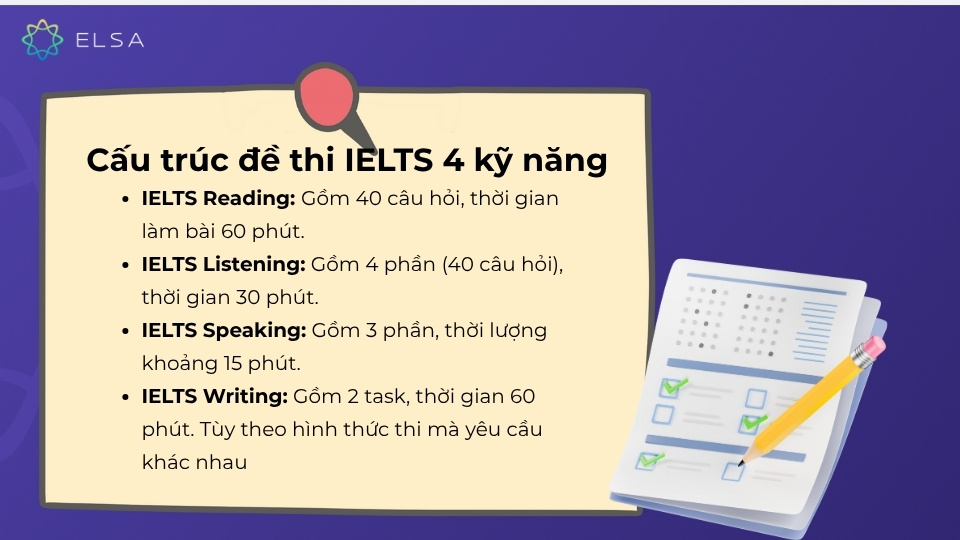 Cấu trúc đề thi IELTS 4 kỹ năng