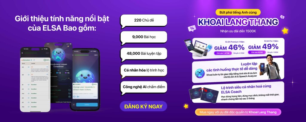 ELSA Speak là lựa chọn lý tưởng để cải thiện kỹ năng nói và phát âm một cách hiệu quả và nhanh chóng đạt được điểm số mong muốn trong kỳ thi IELTS. Đăng ký để khám phá các tính năng của ứng dụng ngay nhé!
