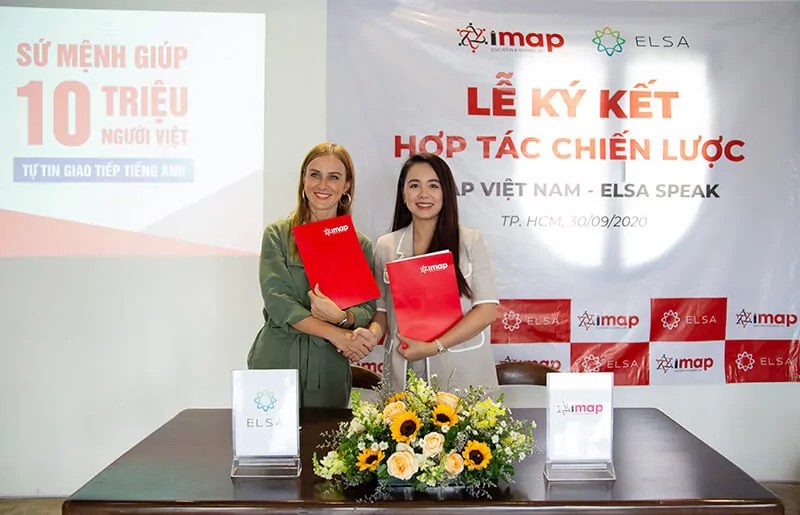 Sáng qua 30/09/2020 tại Tp Hồ Chí Minh đã diễn ra lễ ký kết hợp tác chiến lược giữa Công ty Cổ phần Giáo dục & Đào tạo IMAP Việt Nam và Công ty TNHH Elsa về chương trình hợp tác dài hạn trong việc cung cấp ứng dụng học tiếng Anh