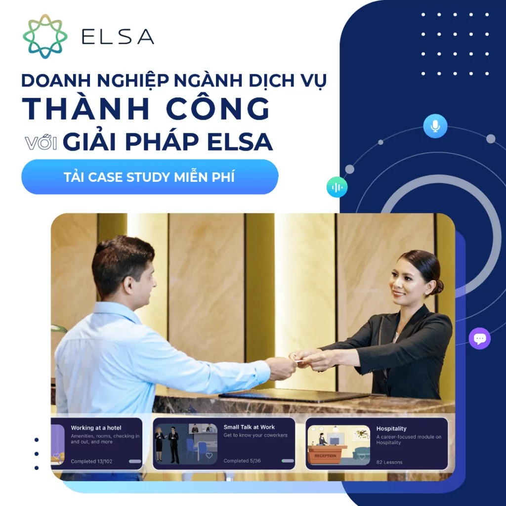 Đặc biệt, để nâng tầm khách sạn theo tiêu chuẩn quốc tế, hãy trải nghiệm chương trình đào tạo tiếng Anh cho doanh nghiệp dịch vụ tại ELSA Speak ngay hôm nay!