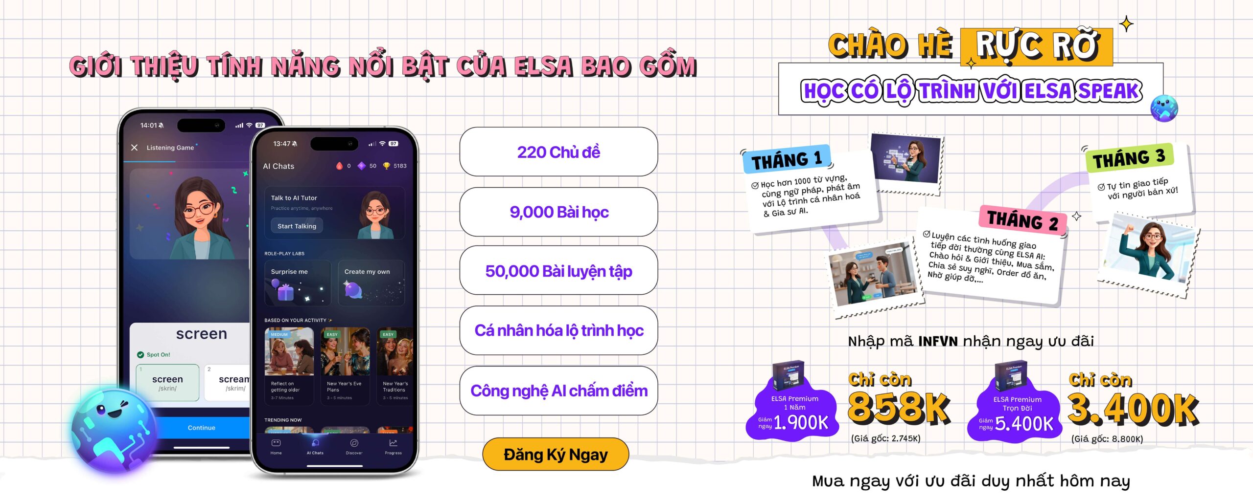 Gói học ELSA Speak là gói học tiếng Anh mới nhất đến từ ELSA, được trang bị các tính năng hàng đầu của ứng dụng như ELSA Pro, ELSA AI và ELSA Speech Analyzer. Từ khi mới xuất hiện trên thị trường, gói học đã thu hút nhiều sự chú ý của cộng đồng người học tiếng Anh.
