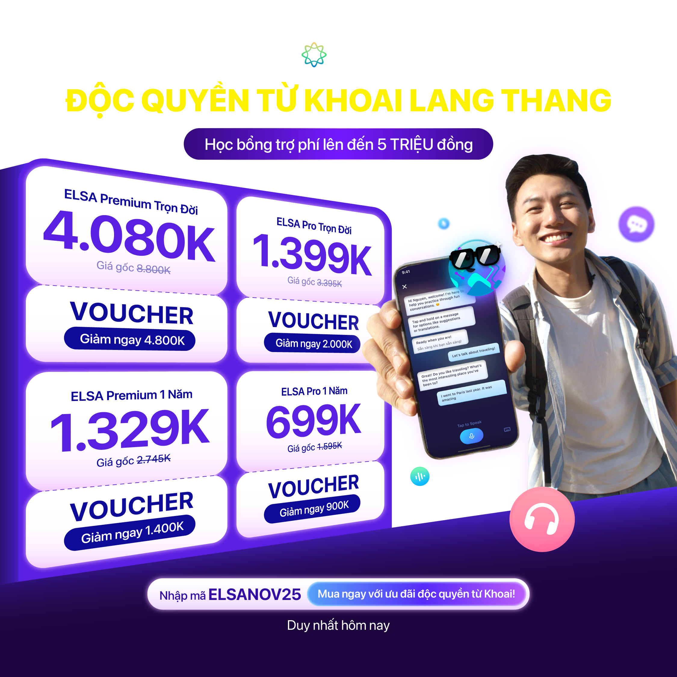 >> Có thể bạn quan tâm: Tiếng Anh là một kỹ năng cần được rèn luyện thường xuyên để đạt kết quả như mong muốn. Nếu bạn đang tìm kiếm phương pháp học tiếng Anh cấp tốc nhưng vẫn đảm bảo hiệu quả, ELSA Speak sẽ là người đồng hành phù hợp. Nhấn vào button bên dưới để bắt đầu hành trình học tiếng Anh cùng AI qua gói ELSA Pro.