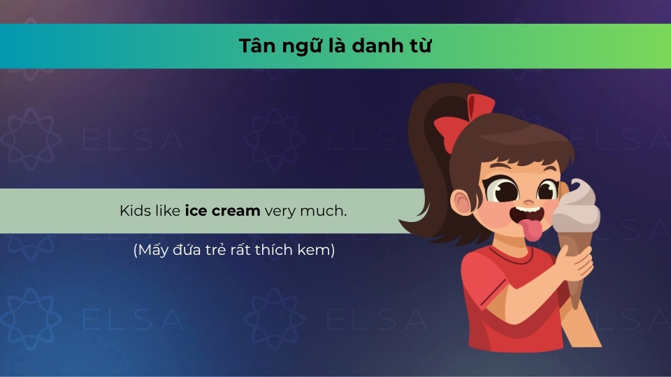 Trong câu, tân ngữ có thể nằm ở các dạng khác nhau như danh từ, động từ nguyên mẫu có to, động từ dạng V-ing, đại từ nhân xưng hoặc mệnh đề.