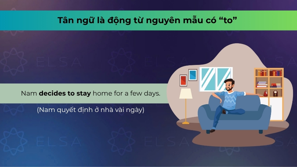 Ví dụ: Nam decides to stay home for a few days. (Nam quyết định ở nhà vài ngày).