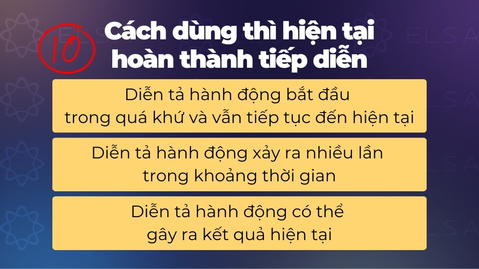 Bảng cách dùng thì hiện tại hoàn thành tiếp diễn