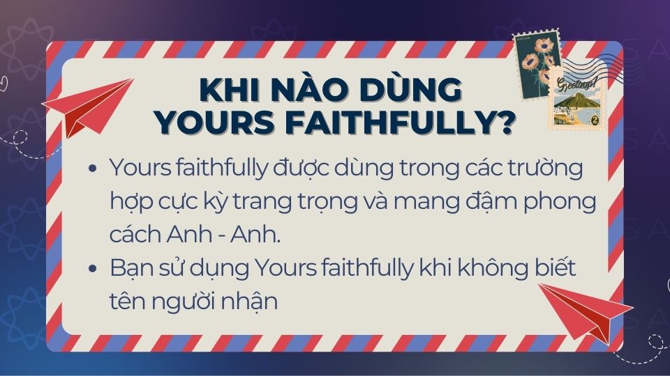 Yours faithfully được dùng trong các trường hợp cực kỳ trang trọng và mang đậm phong cách Anh – Anh.