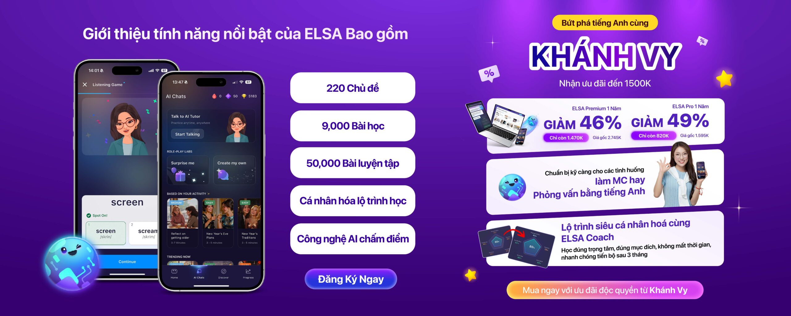 Ngoài ra, ứng dụng còn cung cấp hơn +7,000 bài học đầy đủ các kỹ năng phát âm, nghe, dấu nhấn, hội thoại giúp bé phát triển khả năng tư duy ngoại ngữ. Đồng thời, với công nghệ nhận diện giọng nói AI độc quyền, bé sẽ được hỗ trợ nhận diện lỗi sai trong phát âm và hướng dẫn sửa chi tiết từ khẩu hình miệng đến cách đặt lưỡi. Từ đó, bé có thể rèn luyện được thói quen nói tiếng Anh theo giọng chuẩn quốc tế.