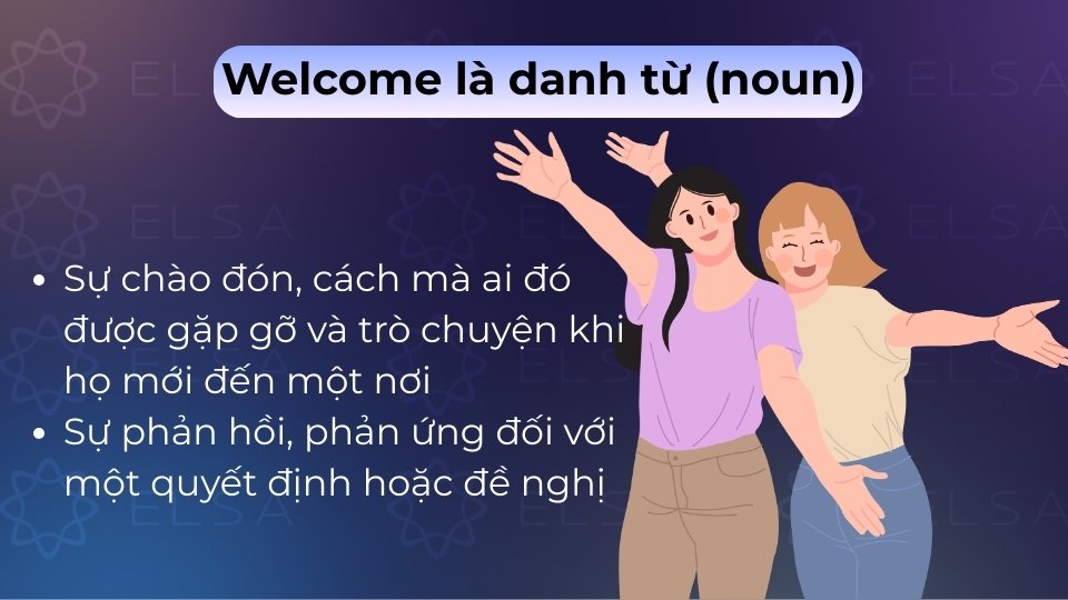 Welcome /ˈwel.kəm/ là một từ vựng cực kỳ phổ biến với vai trò đa dạng, có thể đóng vai trò là danh từ, động từ, tính từ hoặc thán từ tùy vào ngữ cảnh.