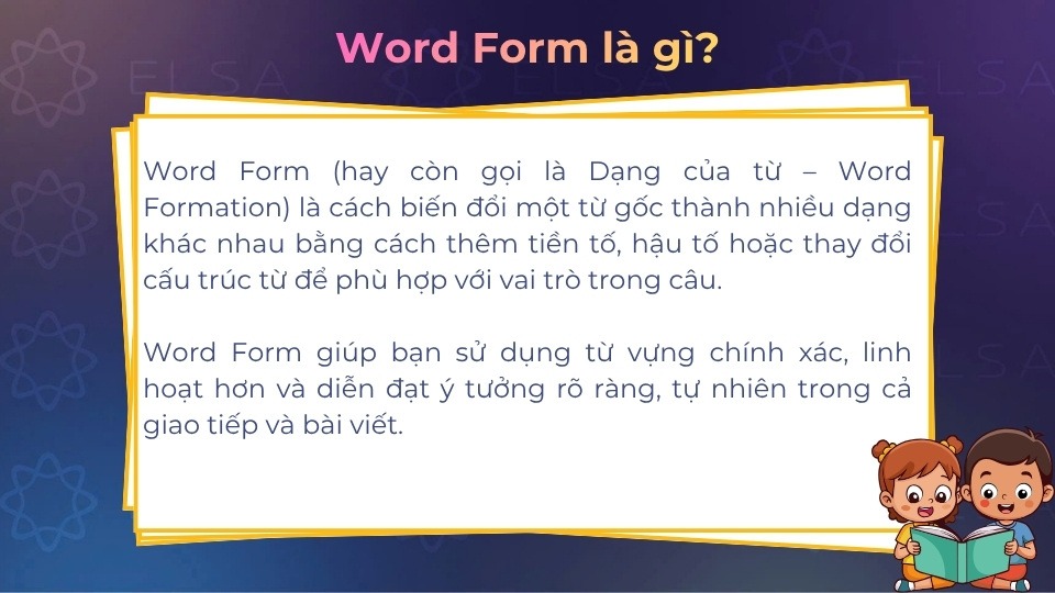 Hiểu và sử dụng thành thạo Word Form chính là “chìa khóa nâng cấp” vốn từ vựng và khả năng diễn đạt của bạn trong tiếng Anh. Cùng ELSA Speak sẽ giúp bạn khám phá toàn bộ kiến thức từ cơ bản đến nâng cao kèm bài tập thực hành nhé!